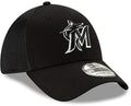 New Era Miami Marlins Black and White Neo 39THIRTY Black Stretch Fit Hat M-L